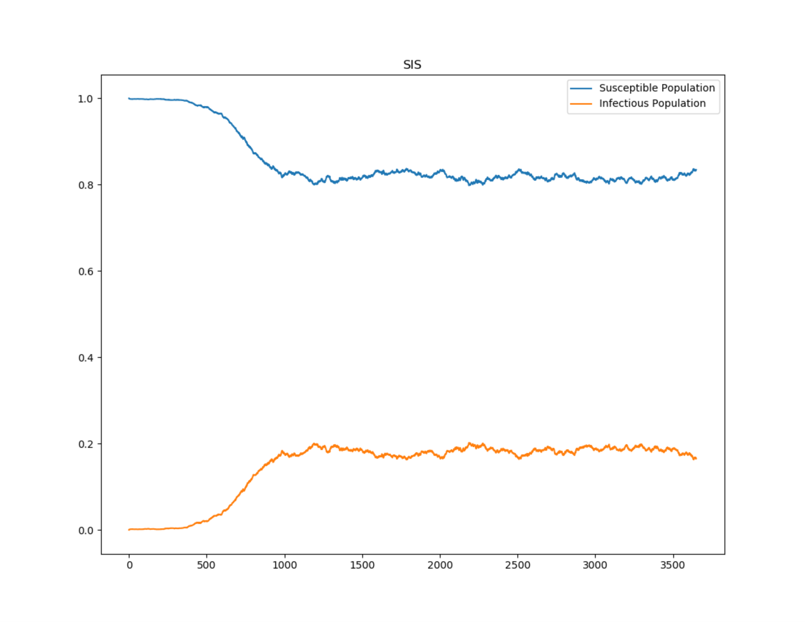 Figure 5: SIS outbreak approaching 17% infected population at steady state#