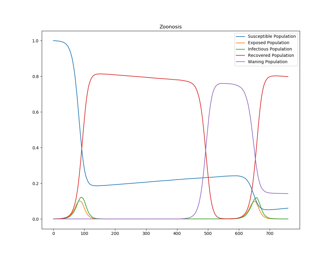 Figure 2: All output channels showing re-seeding caused by zoonosis and waning immunity#
